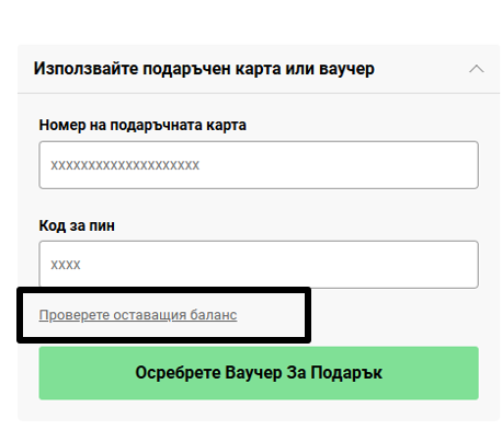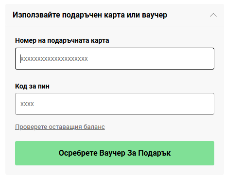 Ако поръчката Ви е платена частично или изцяло с карта за подарък или електронен ваучер, сумата за възстановяване ще бъде издадена като карта за подарък или електронен ваучер до стойността на използваната карта за подарък. В този момент всички останали дължими средства ще бъдат възстановени по другите начини на плащане, които сте използвали при поръчката.