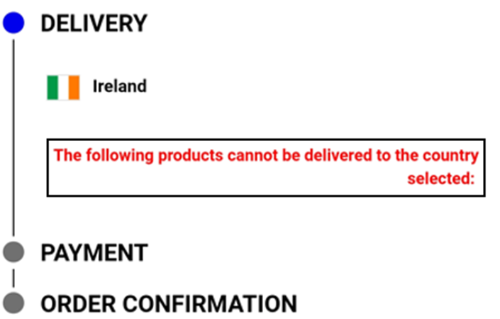 Ако видите съобщение за грешка "Следните продукти не могат да бъдат доставени до избраната държава:" при проверка, няма да можем да продължим с поръчката ви. Моля, премахнете артикула от кошницата си.